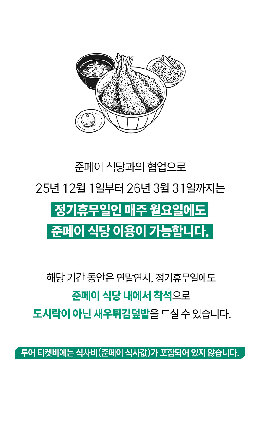 - 장시간 이동 및 안전상의 이유로 만 48개월 미만 유아는 투어가 불가합니다.